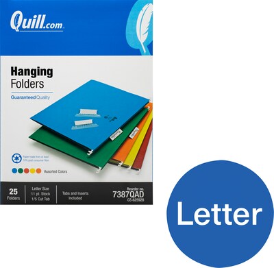Quill Brand Hanging File Folders 1 5 Cut Letter Size Assorted 25 Box 7387qad Quill Com